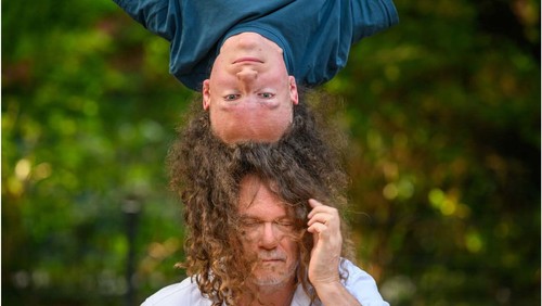 Vater & Sohn: Claas Hoffmann & Jim Cosmo Drinkuth spielen Lieder aus der Welt hinter dem Spiegel: Songs der _Time and Space Society._ Ein musikalischer Abend mit Hackbrett & anderen Instrumenten. Und ein Video-Bilderbuch, der Engel, von denen sie begleitet werden.