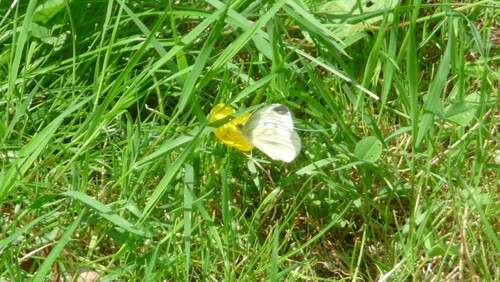 Auf einmal hatte ich zwei Begleiter: zwei Zitronenfalter flogen eine ganze Weile einander umkreisend mit mir in eine Richtung. Manchmal machten sie eine kleine Pause im Gras. Dann holten sie mich wieder ein und flogen ein Stück voraus.